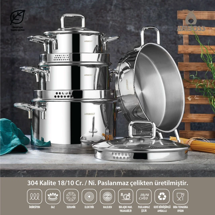 سرویس قابلمه استیل ۸ پارچه Amboss ترکیه کد 6572