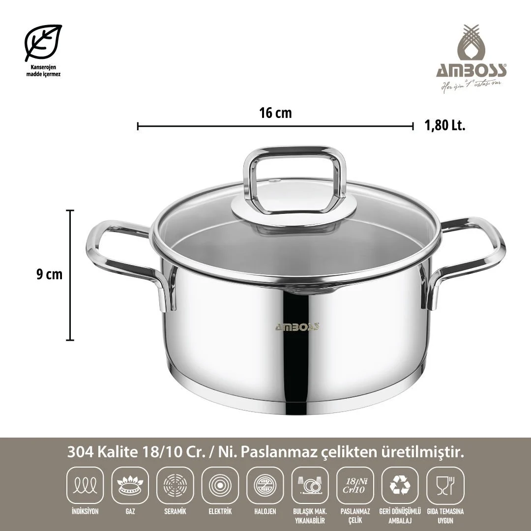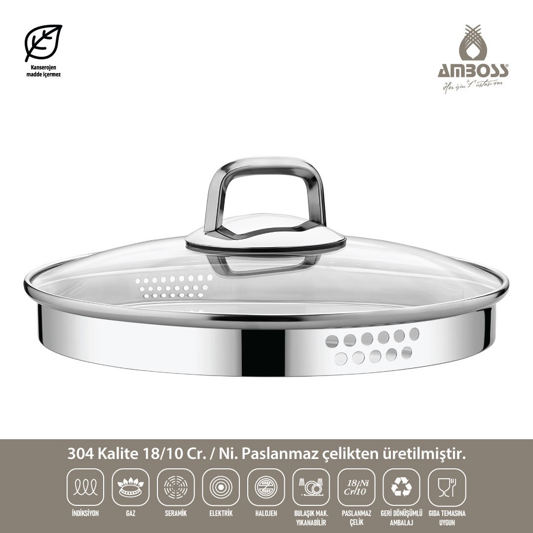 سرویس قابلمه ۸ پارچه استیل ضد زنگ Amboss Diamond Strainer با ظرافت و کارایی خود، به بخشی ضروری از آشپزخانه شما تبدیل خواهد شد. دربهای شیشهای آن به همراه صافیها به شما این امکان را میدهند که در یک مرحله آسان، هم بپزید و هم آبکش کنید.